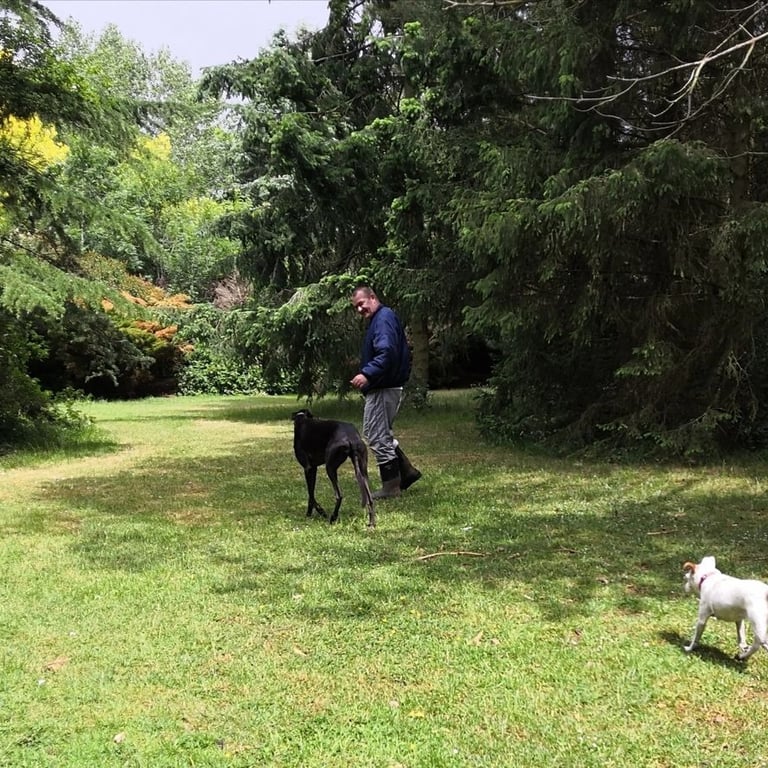 Taking your dog for their daily walk. Kind and positive interaction with treats and toys provided. Safe transport to the nearest countryside park, footpath trails.